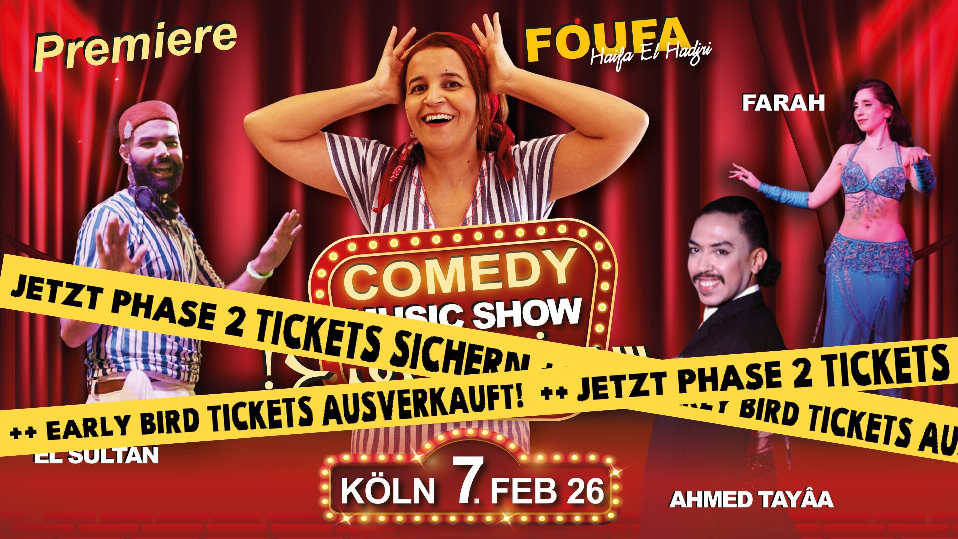 Deine Auszeit! Events & Gamza Tounsia bringen gemeinsam mit der Tiktok bekannten tunesischen Comedienne Haifa Foufa erstmals eine neuartige Comedy & Music Show nach Europa. Das neuartige Showkonzept verbindet arabischsprachige Comedy, maghrebinisch-orientalische Party & orientalische/maghrebinische Tanzshows zu einem durchgehenden Kulturerlebnis.